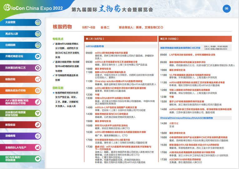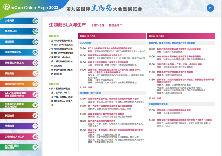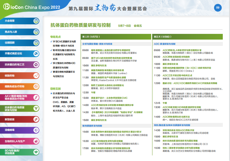 第九屆國際生物藥大會暨展覽會將有10+場細分論壇及開幕式,多個場景展區(qū),圍繞生物藥的多個細分品類展開深入分享與探討,攜手各行專家共同解答上述困惑,助力行業(yè)加速發(fā)展。