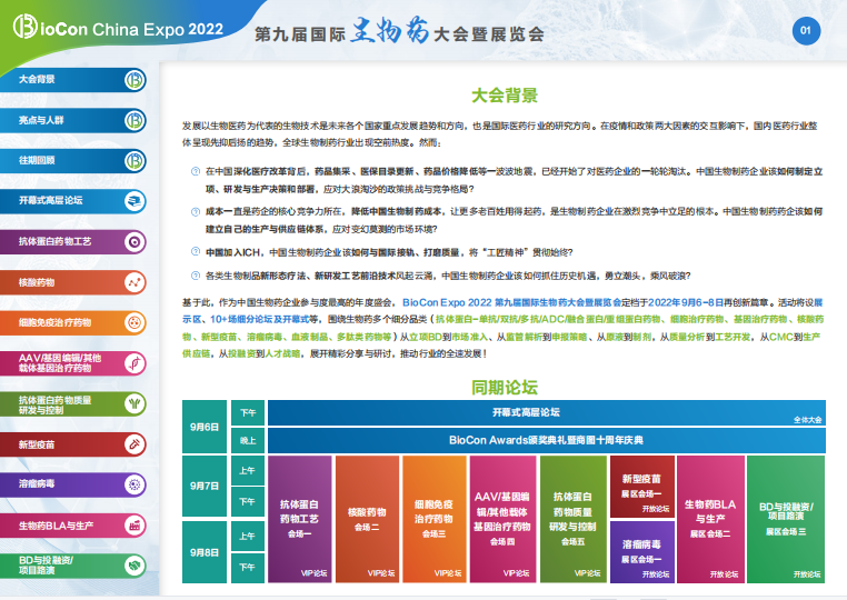 中國生物藥企參與度頗高的年度盛會——第九屆國際生物藥大會暨展覽會,BioCon China Expo 2022,將于——