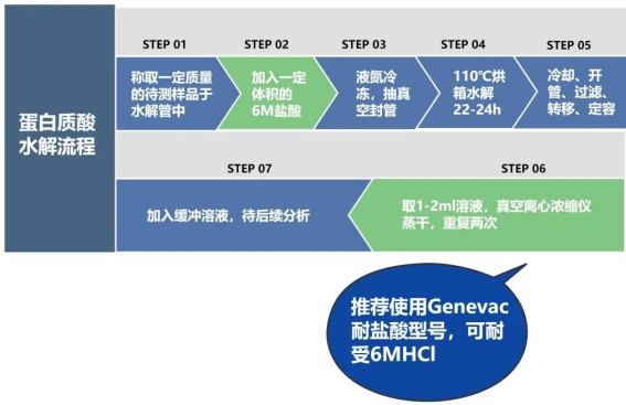 酸水解法是氨基酸分析中較常用的前處理方法, 22種α-氨基酸中大多數(shù)可采用酸水解法,即用6M高純度的鹽酸將蛋白質(zhì)裂解成單個游離氨基酸,隨后把殘留的鹽酸蒸發(fā)去除。