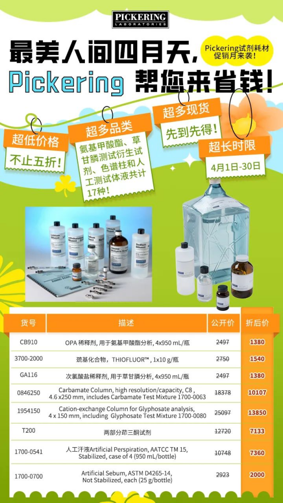 Pickering試劑耗材促銷(xiāo)月強(qiáng)勢(shì)來(lái)襲