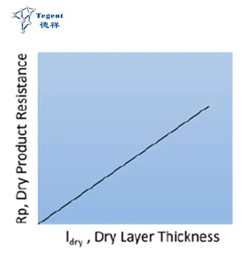 Rp一般來說會隨著干燥層的厚度(Idry)的增加而增大,如果干燥層組分和結構均一,二者呈線性的關系,如下: