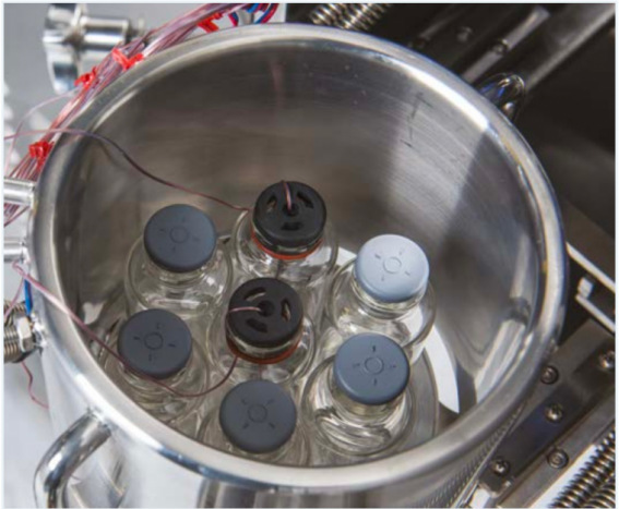 由于生物制劑的活性藥物成分(API)價(jià)格昂貴,可用于冷凍干燥開(kāi)發(fā)和優(yōu)化的數(shù)量有限。LoS技術(shù)套件內(nèi)的冷凍干燥機(jī)包括一個(gè)微型凍干機(jī)Lyoccapsule(圖6),配備了創(chuàng)新的PAT工具和技術(shù),且與SP其它更大規(guī)模的凍干機(jī)保持一致性。