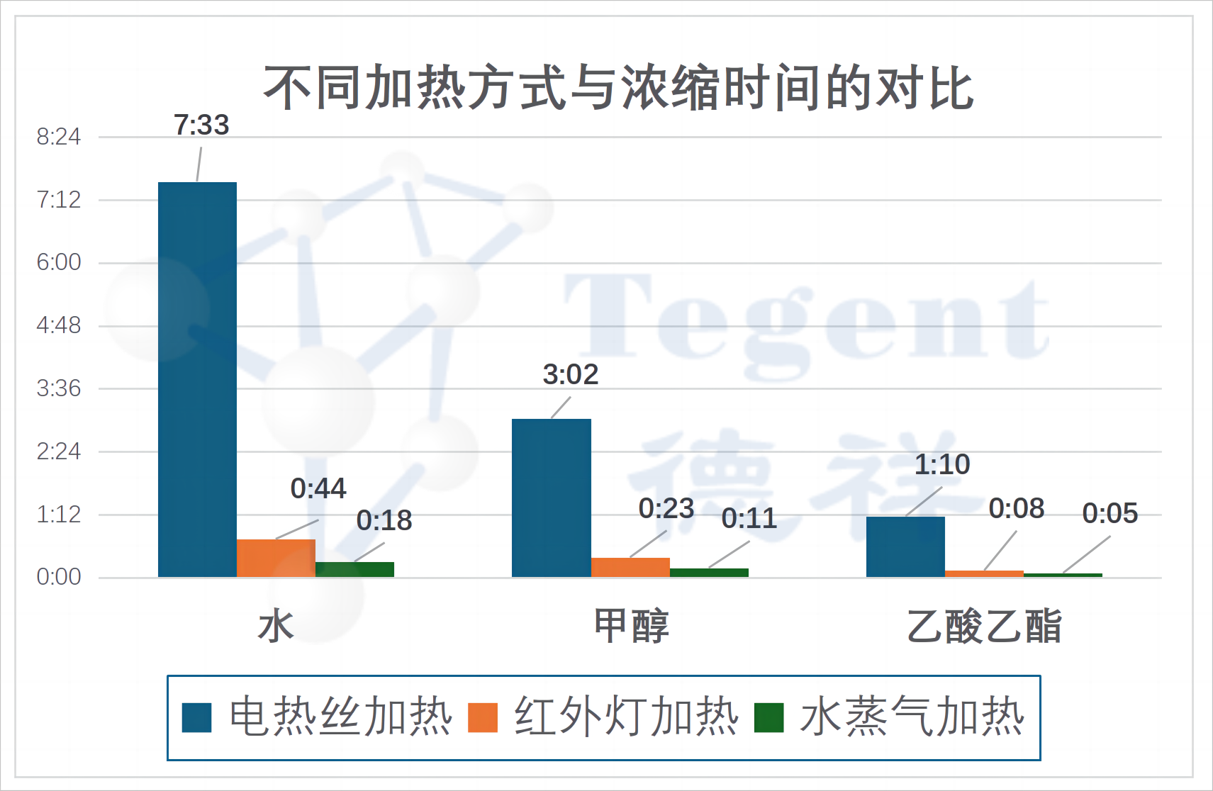從圖中數(shù)據(jù)對比可看出,選擇紅外燈加熱與蒸汽加熱明顯速度要更快一些,尤其在處理水等中高沸點(diǎn)溶劑來說。