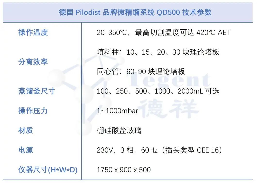 設備建議:Pilodist QD500微精餾系統(tǒng)