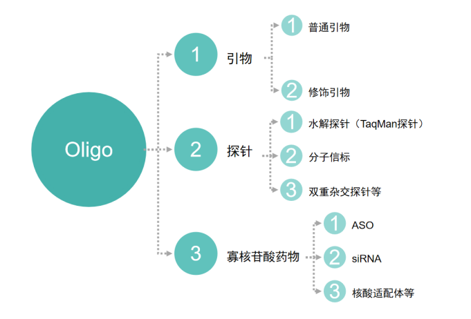 Oligo即寡核苷酸鏈,分子實(shí)驗室常用的PCR引物、NGS捕獲探針、qPCR探針和FISH探針等都是寡核苷酸。除了引物探針以外,還可作為核酸藥物用于遺傳疾病、腫瘤、病毒感染和感覺器官等疾病的治療或預(yù)防。