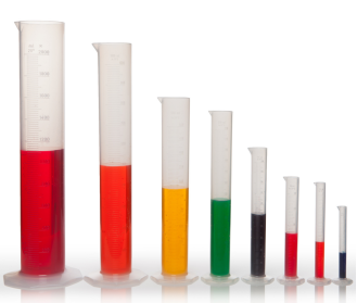 這些量筒有一個公制刻度,上面有凸起的數(shù)字,便于閱讀。